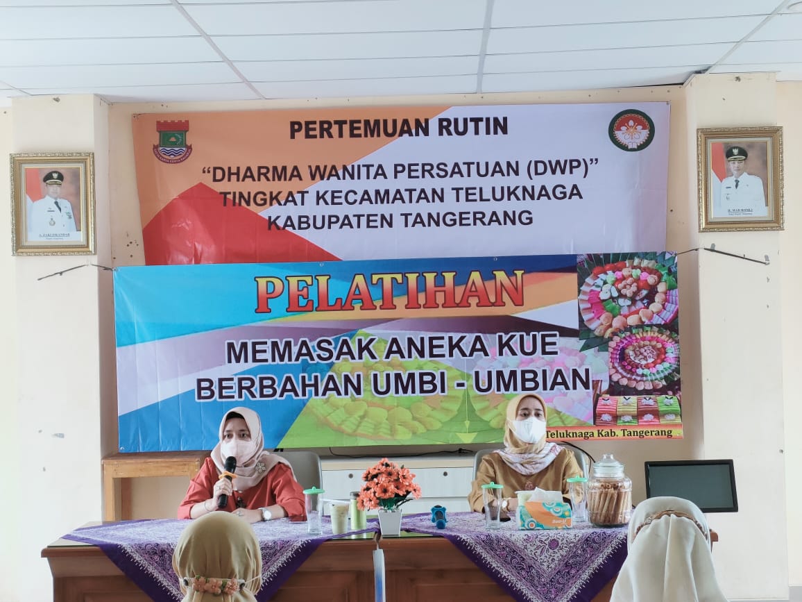 Dalam rangka Pertemuan Rutin TP-PKK Kecamatan Teluknaga, TP-PKK Kecamatan Teluknaga Gelar Pelatihan Memasak Aneka Kue Berbahan Umbi-Umbian bagi Pokja 3 TP-PKK Kecamatan Telukanaga, yang berlangsung di Aula Kantor Kecamatan Teluknaga Kabupaten Tangerang.